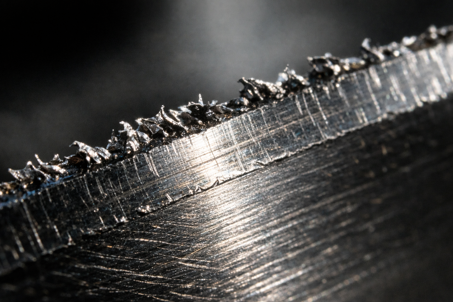 Dabei ist wichtig, die Nebenwirkungen zu berücksichtigen: Ein sehr kleiner Schneidenwinkel kann zwar Gratbildung reduzieren, erhöht aber unter Umständen die Ausbruchneigung. Ebenso kann eine höhere Schnittgeschwindigkeit je nach Werkstoff entweder eine sauberere Trennung fördern oder zusätzliche Erwärmung und damit Verdrängung verstärken. Prozesssicherheit entsteht daher durch Versuchsplanung, klare Prüfmerkmale und eine belastbare Dokumentation der Messerzustände.