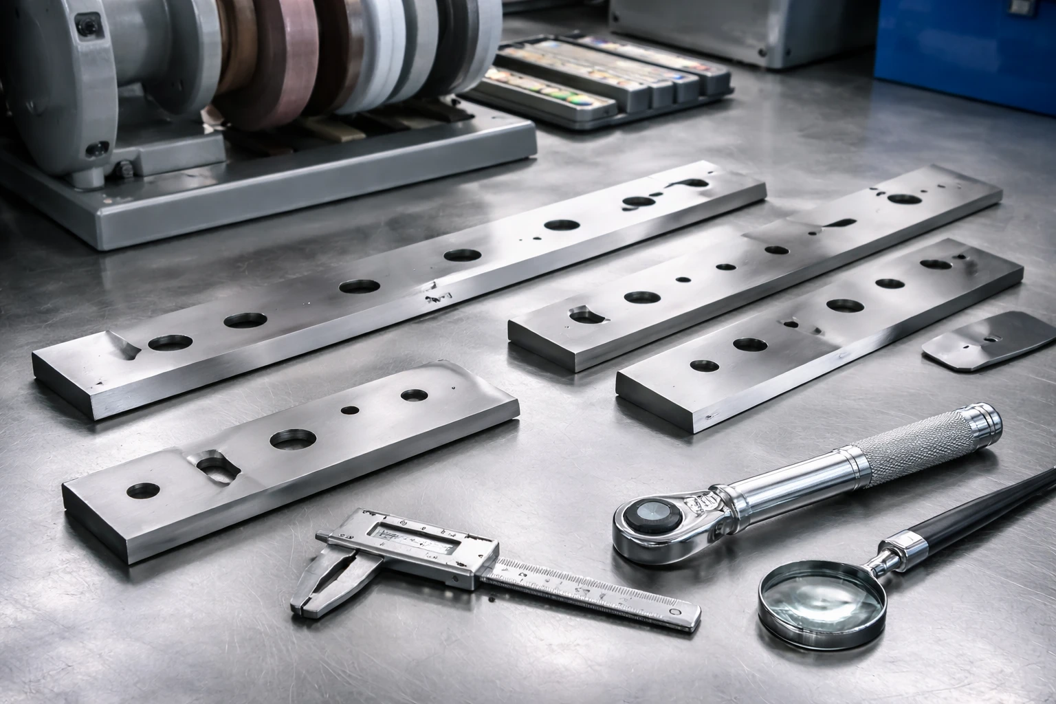Drittens ist die Strategie entscheidend: Wechselt man Messer nach festen Intervallen, nach Qualitätskriterien (Schnittbild), nach Energieaufnahme, nach Geräusch/Vibration – oder erst, wenn es „nicht mehr geht“? „Fahren bis zum Totalausfall“ ist selten wirtschaftlich, weil es Ausschuss, Reinigungsaufwand und unplanmäßige Stillstände erzeugt. In vielen Anwendungen ist ein geplanter Wechselpunkt optimal, bei dem die Messer noch nicht „kaputt“ sind, aber die Kurve von Verschleiß zu Qualitätsverlust bereits ansteigt. Das ist der Punkt, an dem Nachschliff am effizientesten ist: wenig Materialabtrag, wenig Randzonenschaden, hohe Wiederholbarkeit.